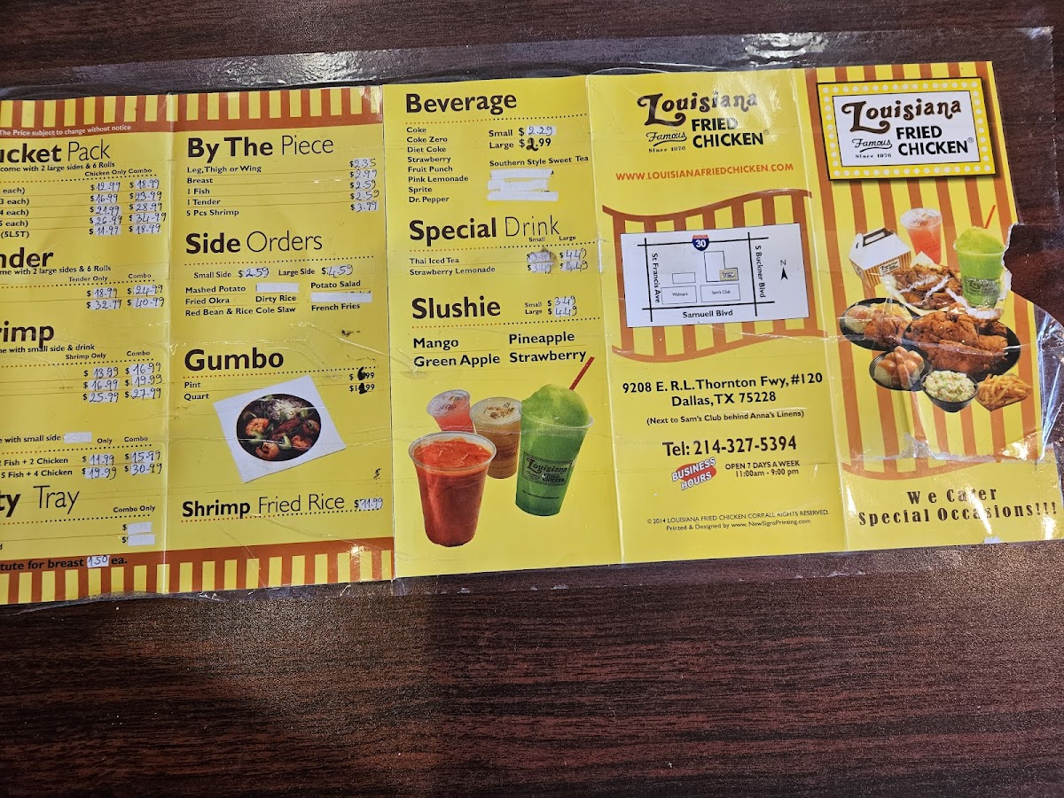 Louisiana Famous Fried Chicken, located in Dallas, TX, is a hidden gem renowned for its flavorful fried chicken and seafood. With a menu that tantalizes the taste buds, highlights include the crispy 3-piece dinner and the savory Mix Combo featuring shrimp, fish, and chicken. Customers rave about the freshly prepared dishes, generous portions, and attention to detail, like their homemade tartar sauce. While onsite dining is unavailable, the takeout experience delivers satisfaction, making it a top choice among local chicken enthusiasts. Whether you're indulging in their delectable sides like fried okra or carrot cake, Louisiana Famous Fried Chicken promises a delightfully satisfying meal.